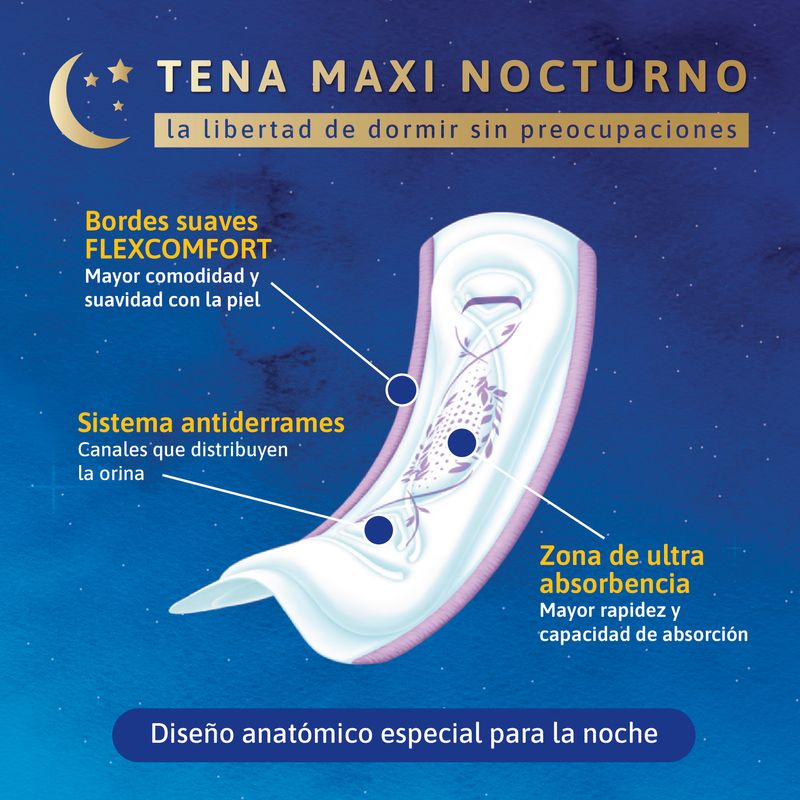 Productos TenaToallas higiénicasNocturnaPACK X3 Toallas higiénicas TENA Discreet Maxi Nocturno Paquete 30un