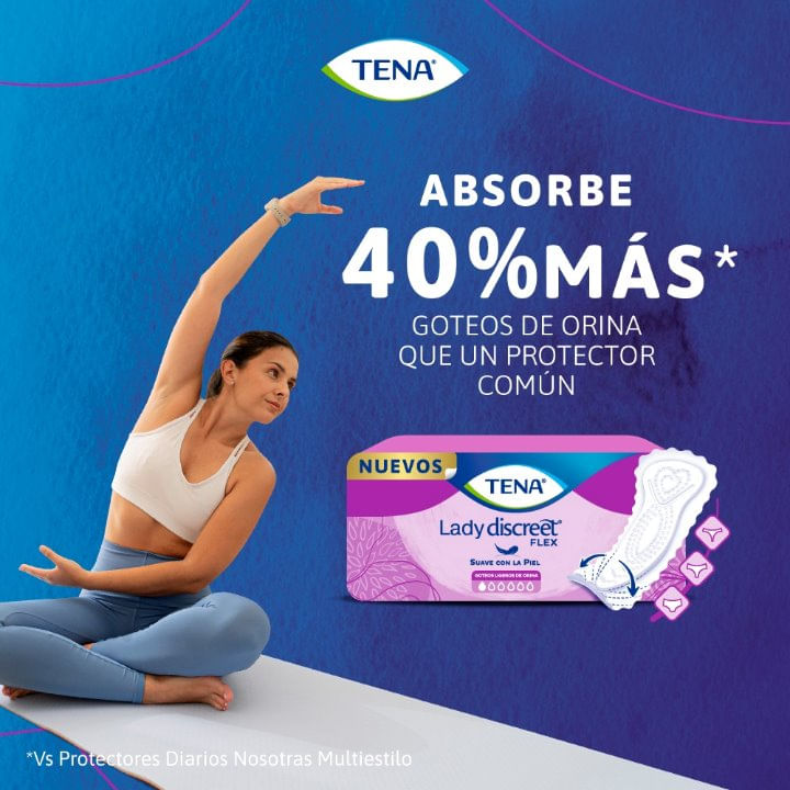 Absorbe 40% más* goteos de orina que un protector común (*vs Protectores Nosotras Normal)